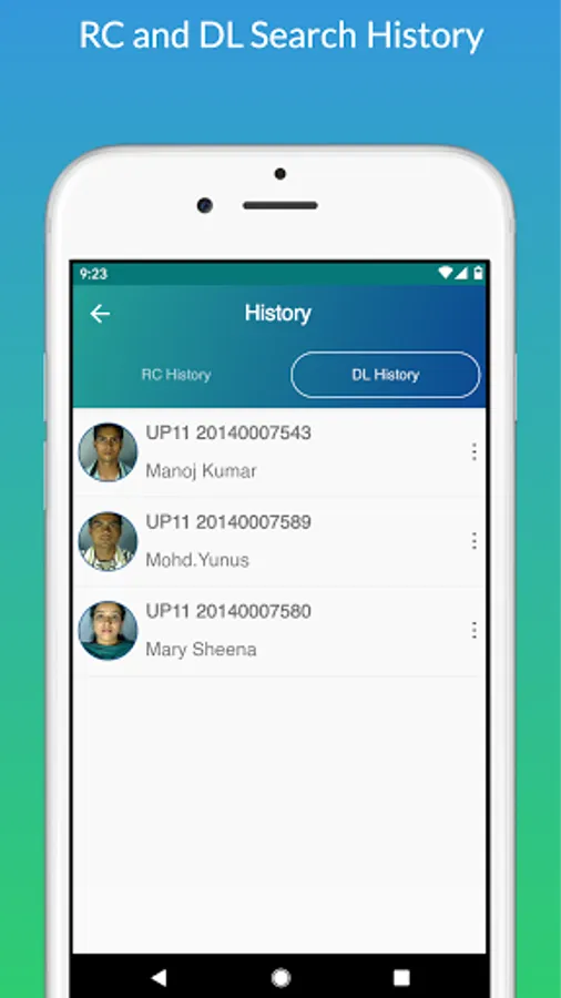 When you search RC detail or Driving Licence Detail all your history will be save on your device.