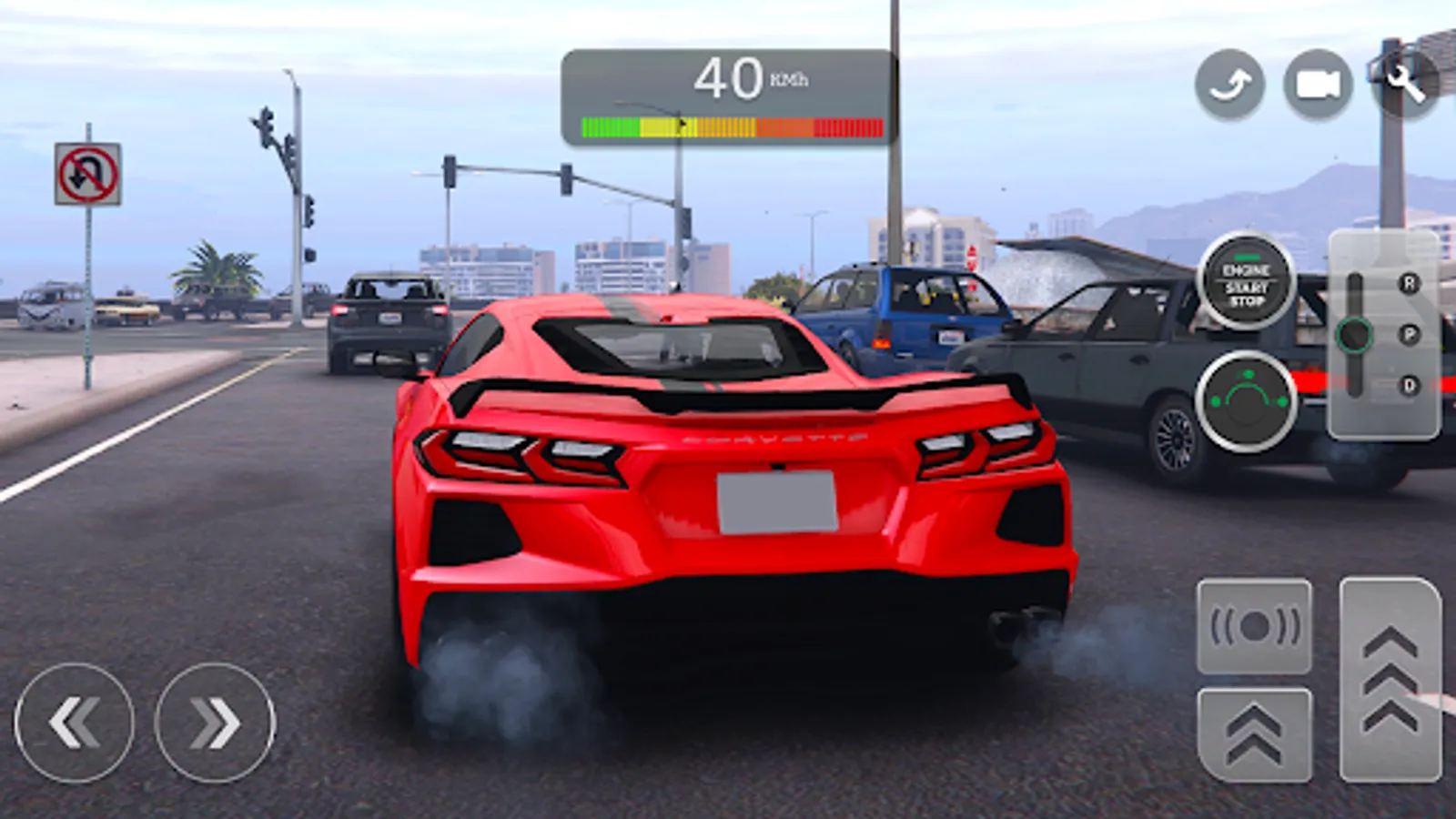Experience city racing in the Chevrolet Corvette C8 car driving simulator. Enjoy the thrill of driving fast American sports cars, like the Corvette C8 and C7, and complete tasks like parking and drift. Test your skills in drag racing and hyper drift missions, and use nitro boost when needed. Improve your driving skills and unlock new modern American cars like the Camaro and Charger. With stunning graphics and realistic sound effects, this simulator offers an adrenaline-pumping driving experience.