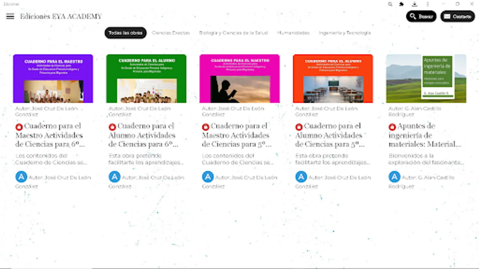 In the books category, we have sections on humanities, biology, health sciences, exact sciences, engineering and technology.