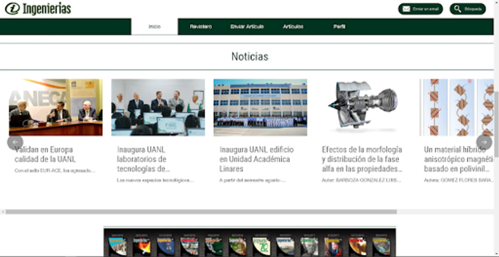 Ingenierías, is a quarterly publication, edited by the Autonomous University of Nuevo León, through the Faculty of Mechanical and Electrical Engineering. Publication Address: Faculty of Mechanical and Electrical Engineering, Pedro de Alba S / N, Building 7, San Nicolás de los Garza, Nuevo León, México, C.P. 66450. Telephone: +52 (81) 83294020 Ext. 5854, Fax +52 81 83320904. Responsible editor: Dr. Juan Antonio Aguilar Garib. Reservation of rights to exclusive use No. 04-2011-101411064600-102, ISSN: 1405-0676. Certificate of lawfulness of title and content: 15,525, granted by the Qualifying Commission for Publications and Illustrated Magazines of the Ministry of the Interior. Trademark registration with the Mexican Institute of Industrial Property: In process. Printed by: Desarrollo Litográfico S.A. de C.V., M. M. del Llano 924 Ote., Centro, Monterrey, Nuevo León, México, C.P. 64000. Print completion date quarterly in: January, April, July and October. Print run: 800 copies quarterly. Distributed by: Autonomous University of Nuevo León, through the Faculty of Mechanical and Electrical Engineering, Pedro de Alba S / N, Building 7, San Nicolás de los Garza, Nuevo León, México, C.P. 66455. The opinions expressed by the authors do not necessarily reflect the position of the editor of the publication. Total or partial reproduction of the contents and images of the publication is prohibited without prior authorization from the Editor. Printed in Mexico All rights reserved © Copyright in force.