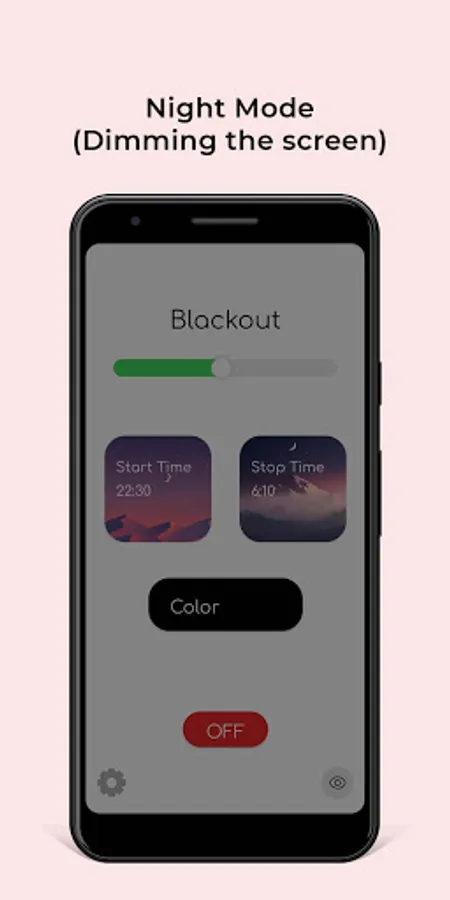 With the Dimmy app, you can easily darken your screen below the system level using the Night Mode. Night mode is useful at night. It loads the eyes much less and also