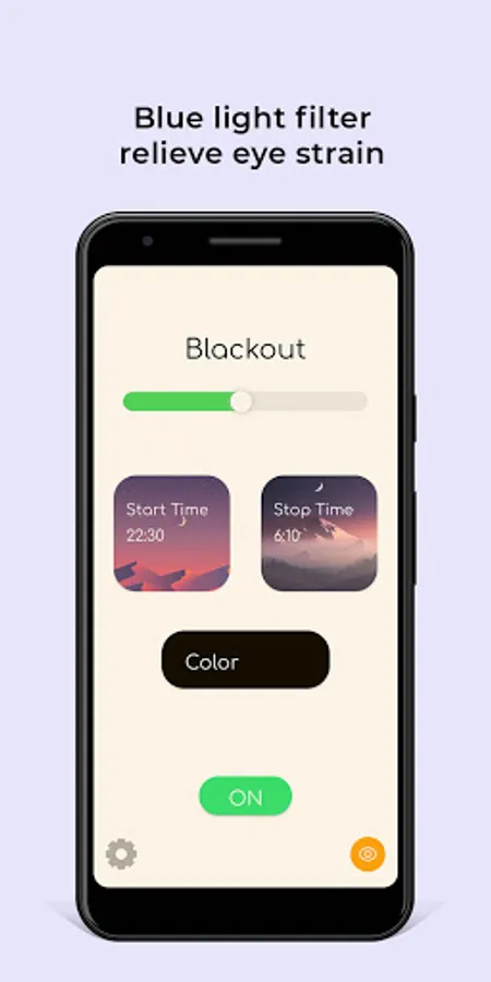 The application has a Blue light filter. Many people know the fact that the blue spectrum of colors in displays provokes eye strain,