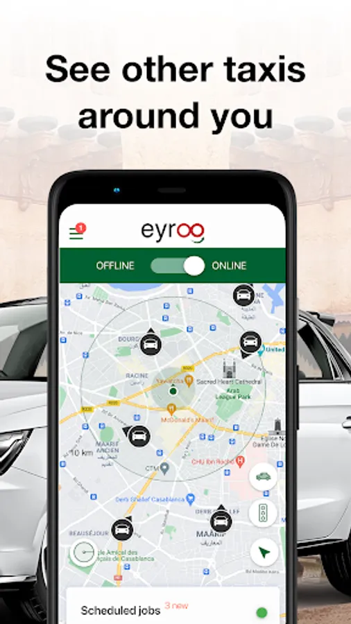 Download Eyroo Driver, plan your time more efficiently and join our growing family of happy successful taxi drivers.