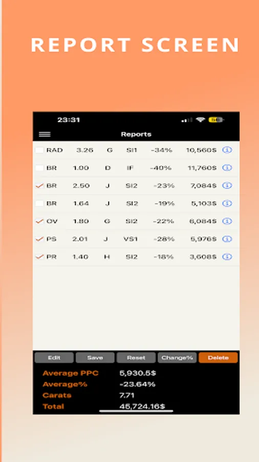 EZcalc also makes it easy to save reports, send them by e-mail, analyzing the average asking price market, searching Diamond's and more!