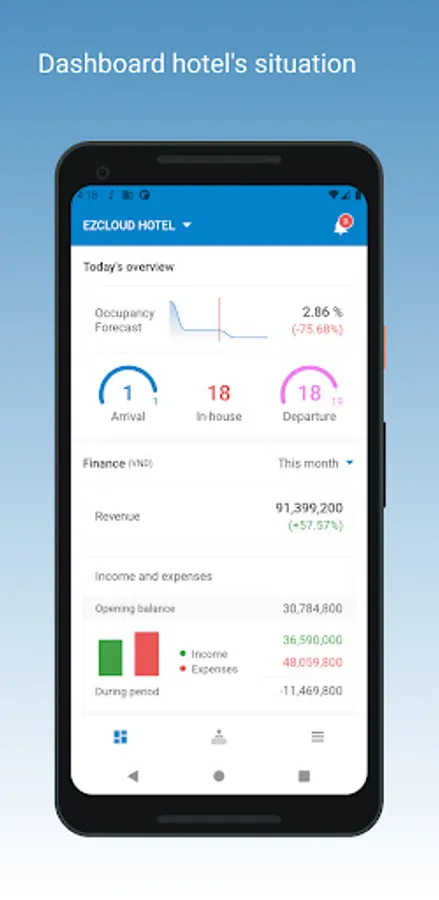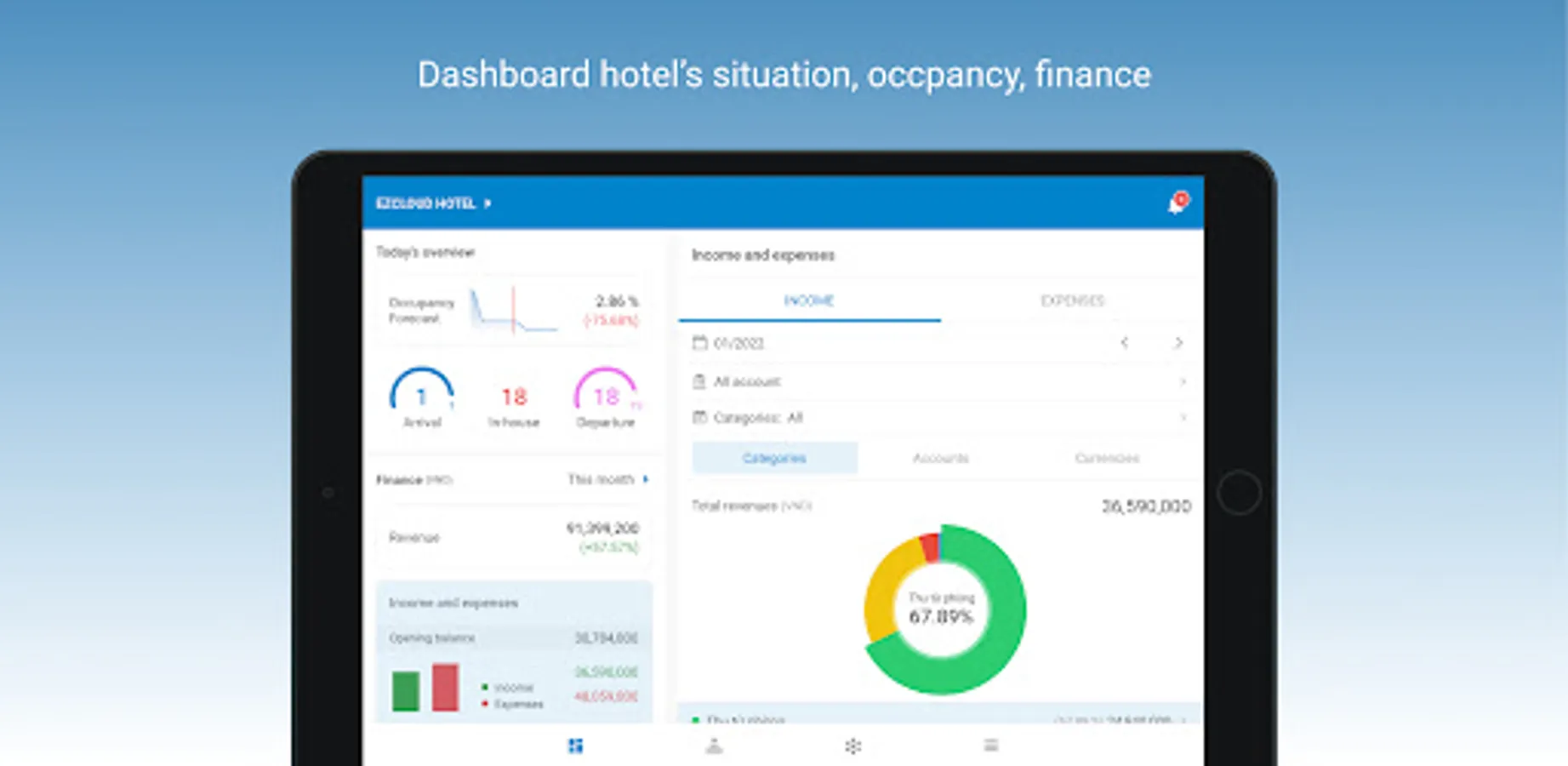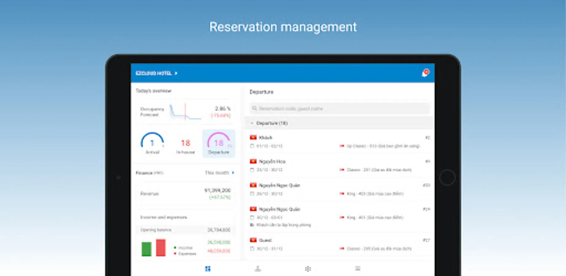 With over 3,000 trusted customers, ezCloudhotel is the number 1 hotel management solution in Vietnam. ezCloudhotel App - Mobile application that helps hotel owners can easily operate and manage hotels remotely without worrying about losses.