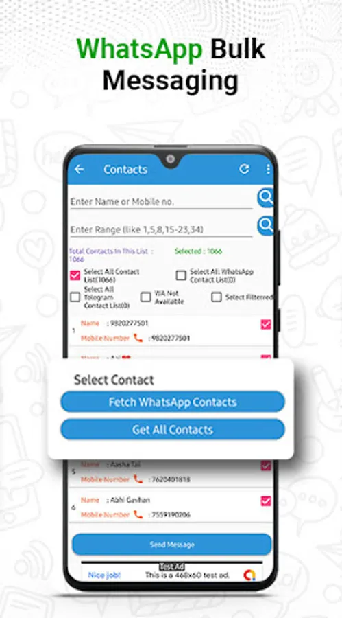 π Contact Import: Import contacts directly from a CSV file/External contact file, enabling you to send bulk WhatsApp messages without the need for saving each contact number individually.