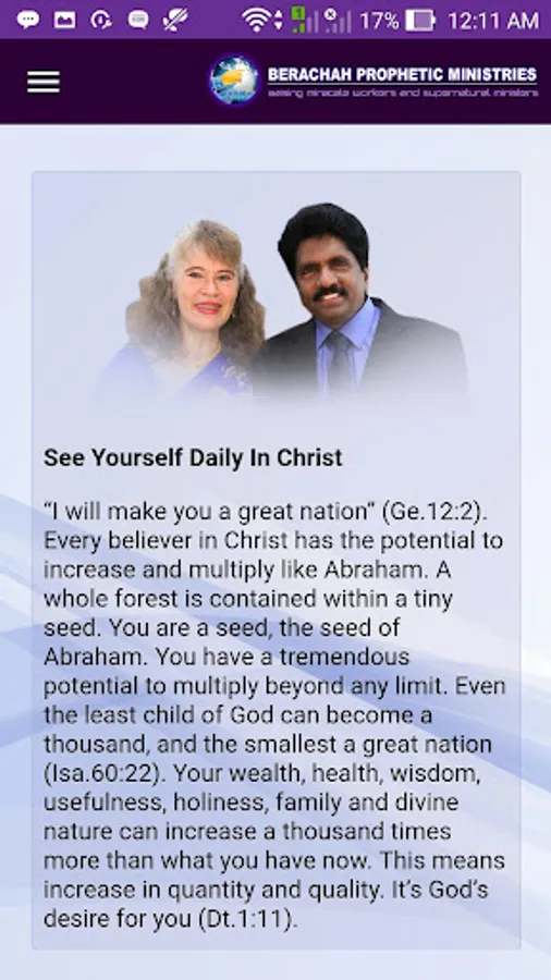 The Word of the Lord came to Brother Ezekiah Francis in a distinct audible voice saying, "Raise me an army." In obedience to God's voice, Berachah Prophetic Ministries was founded in 1988.