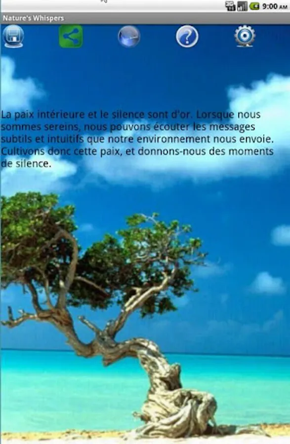 Nature's Wisdom tells you words of wisdom that you need to hear when you need to hear it, helping your personal development. These words are embellished with background images inspiring serenity and peace .