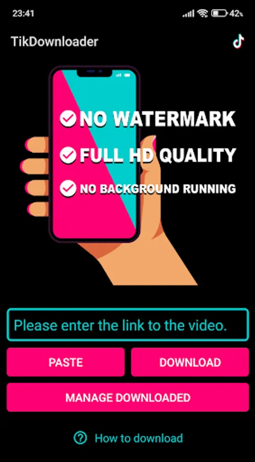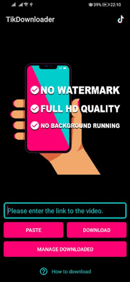 Light and simple TikTok video downloader app, offering full HD quality and no watermarks.