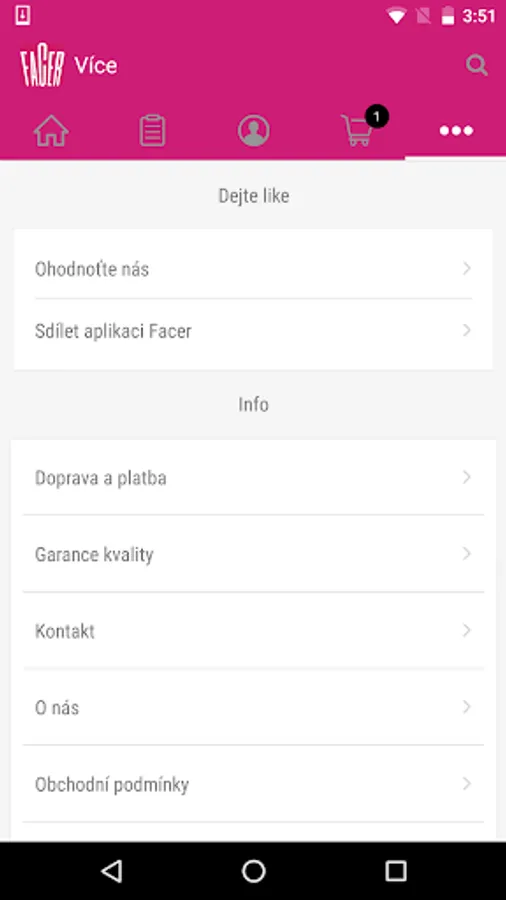 Nakupování je radost, díky FACER si můžeš v pár kliknutích objednat desítky produktů za nízké ceny s dopravou ZDARMA. FACER nabízí velké množství produktů, ale každý den pro tebe přidává další a další, tak checkuj FACER a buď v obraze.