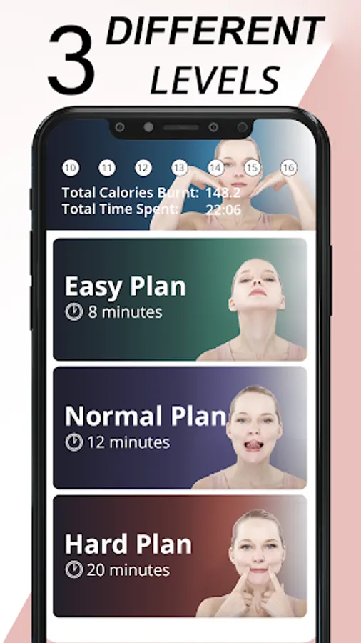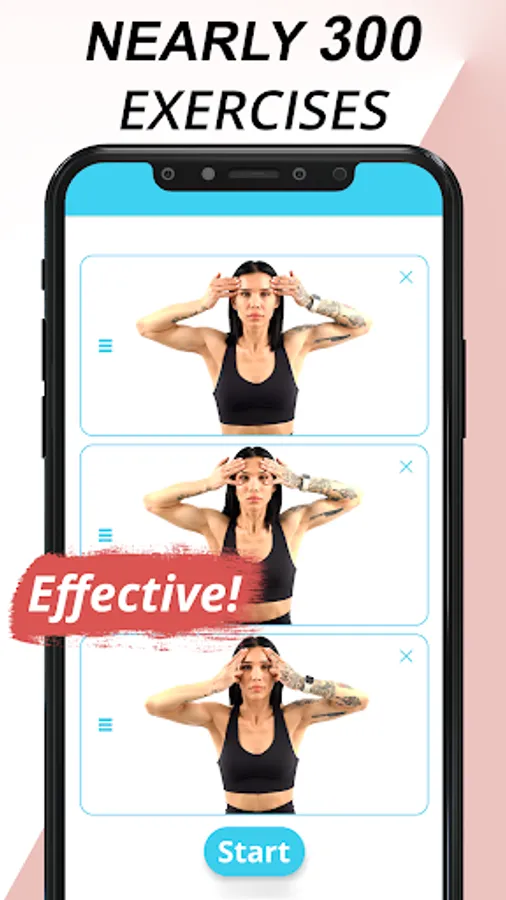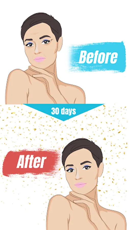 We make different faces of emotions thorughout the day and get wrinkles from laughing, frowning or being surprised. This face yoga app has different facial muscles exercises, like face yoga for smile lines, face yoga for eyes, face yoga for frown lines, face yoga for jawline, face yoga for cheeks, face yoga double chin exercises. Do these exercises, get rid of the wrinkles, get rid of double chin and see the results in such a short time!