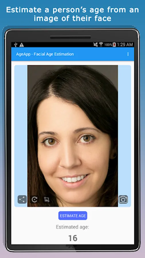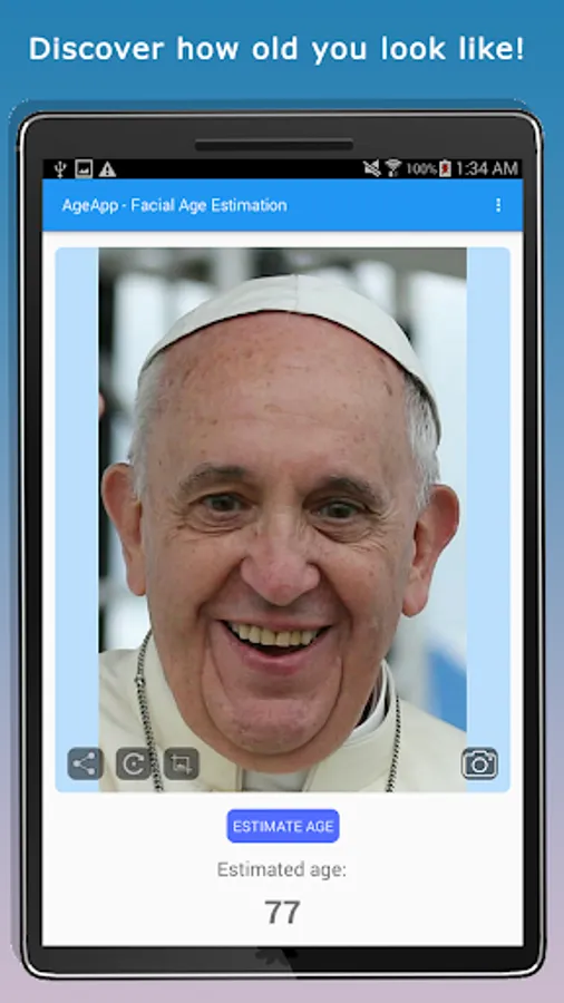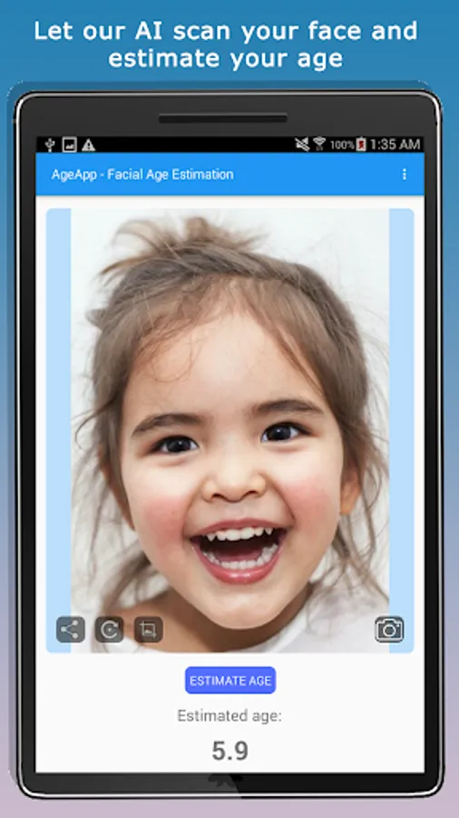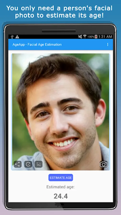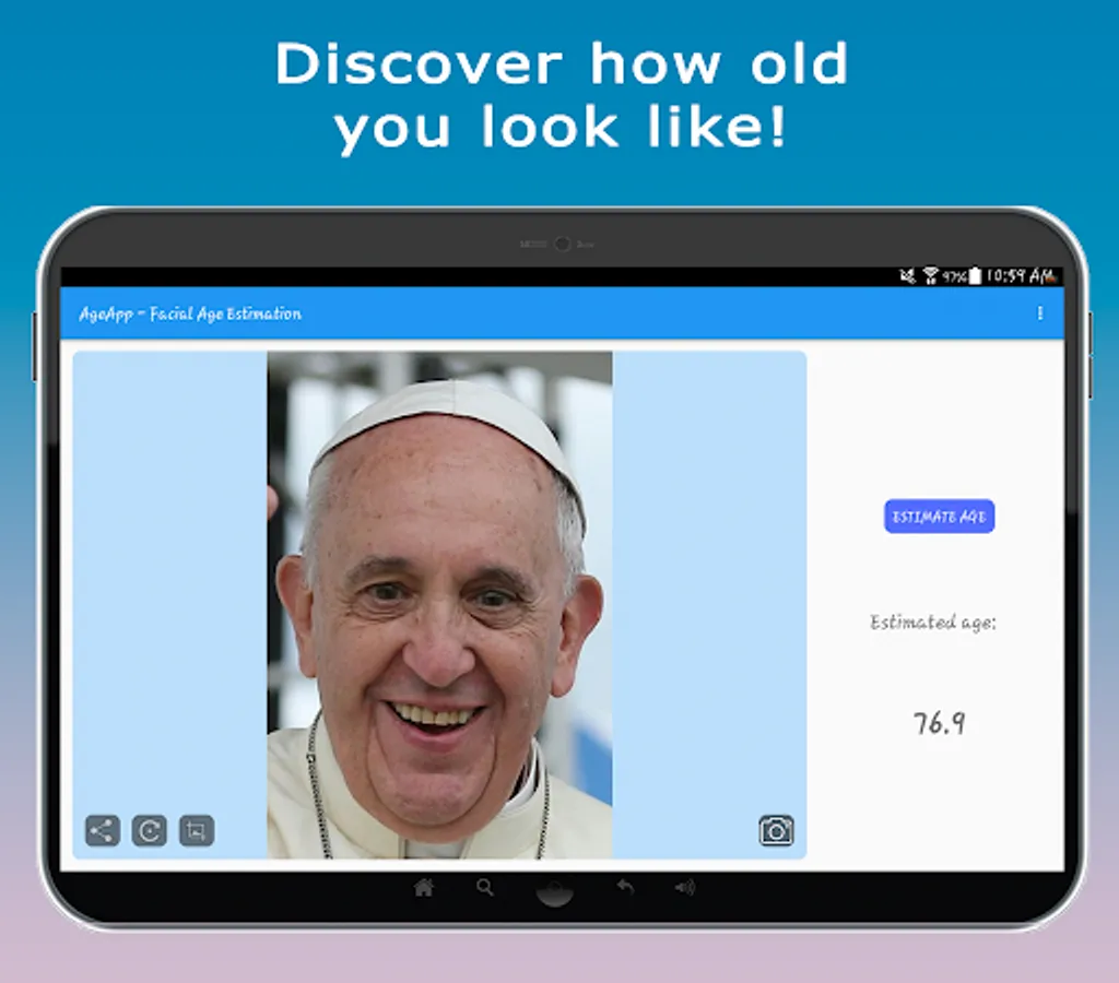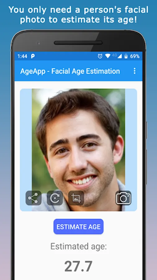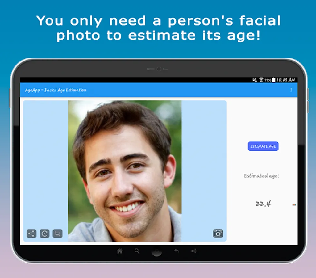 With the “AgeApp - Facial Age test” you can guess a person's age from an image of his face. Our app scans your face to guess your age. Discover how old you look!