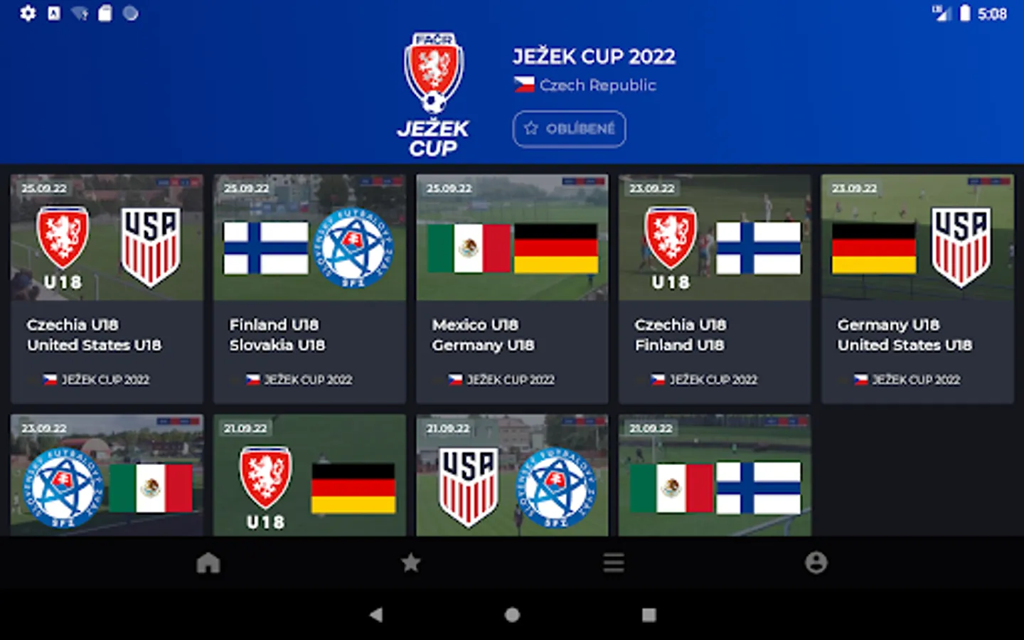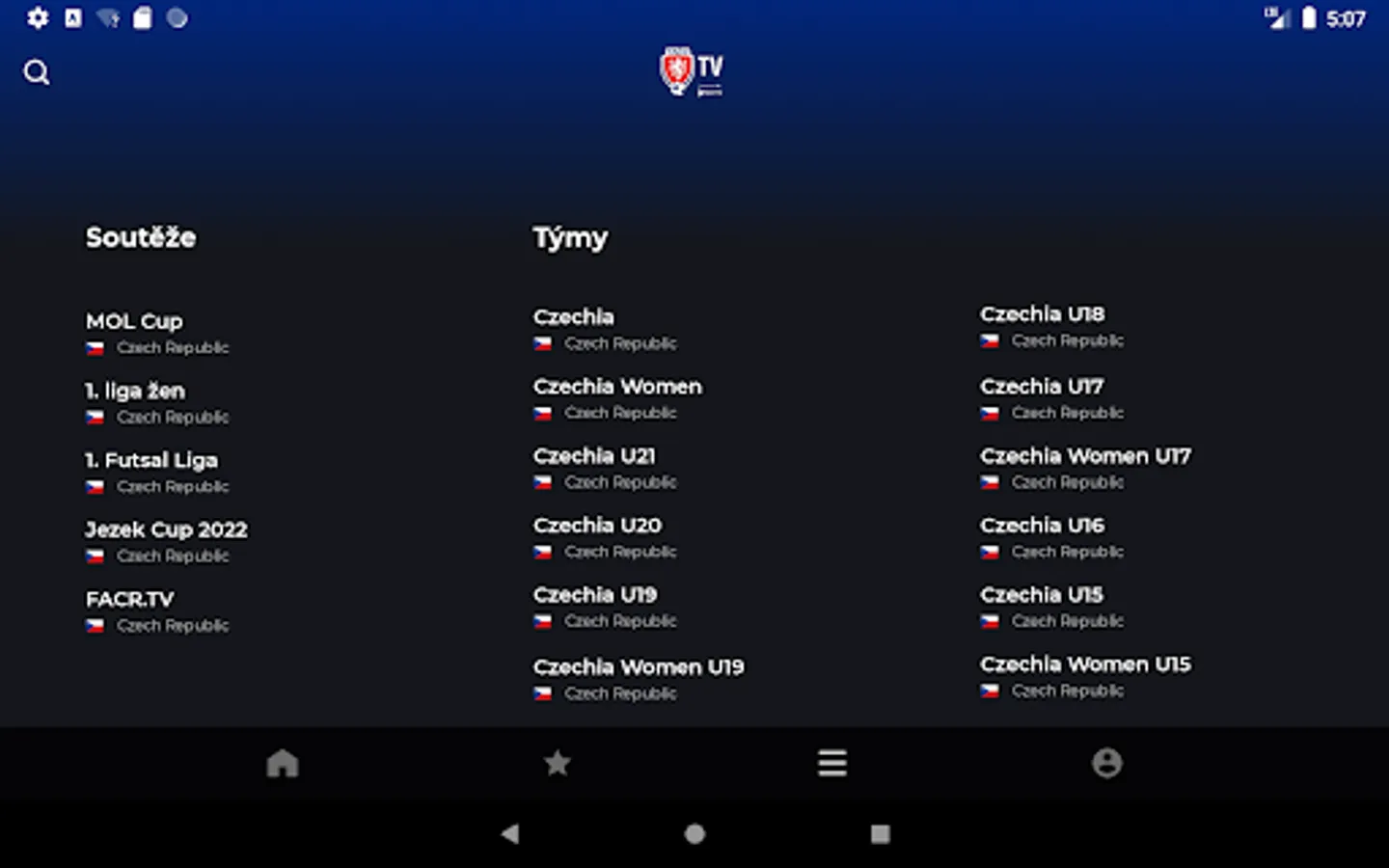 The FACR TV app is a live-streaming platform powered by inSports TV, owned by the Football Association of the Czech Republic that offers live coverage of youth national teams, women's football matches, and other selected competitions played under FACR.