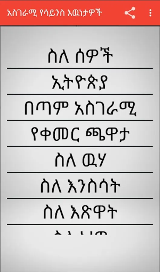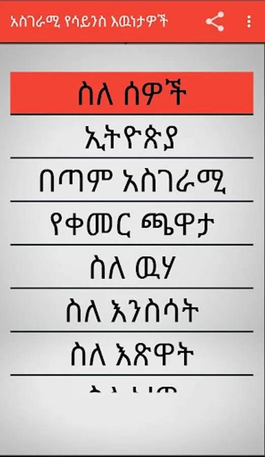 The aim of this application is to provide scientific facts . For these version the app contains about Humans, Animals, Water, Plants, Space and Math totally 211 amazing scientific facts.