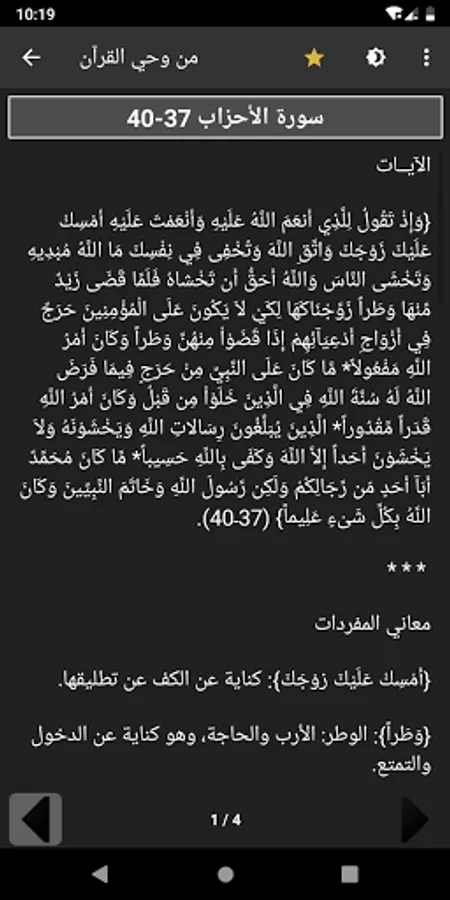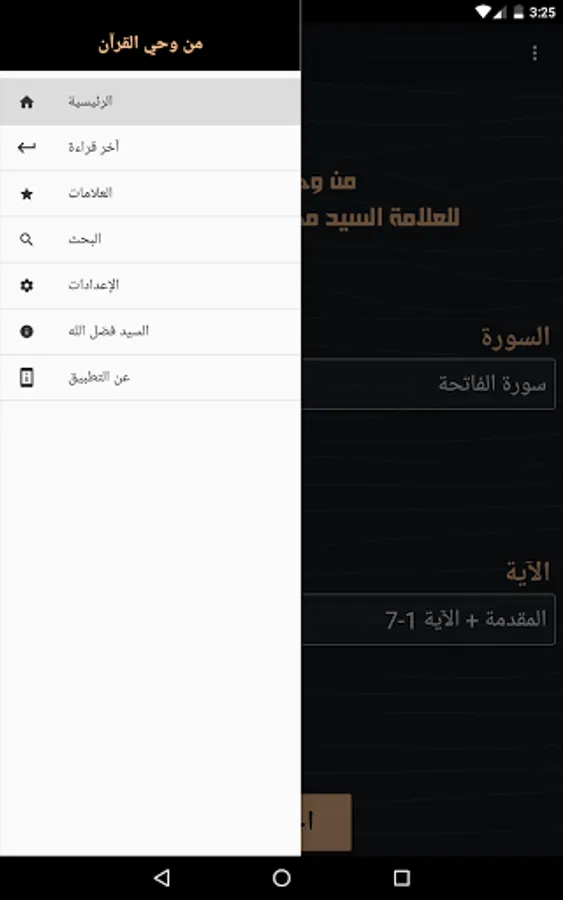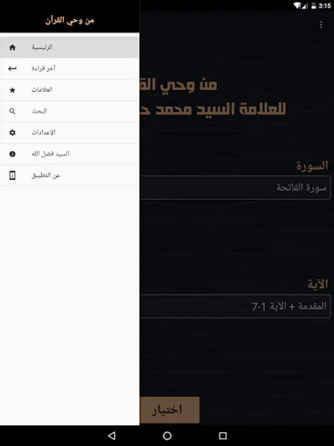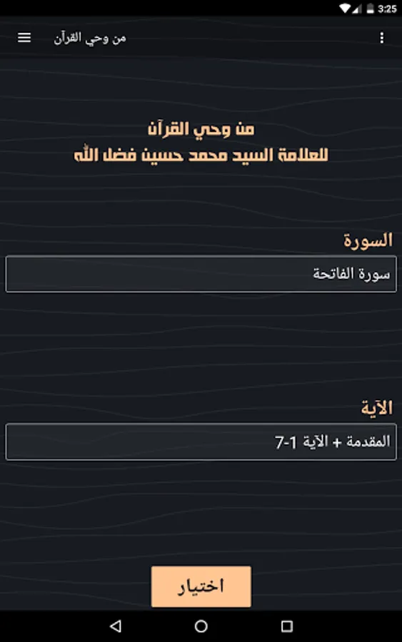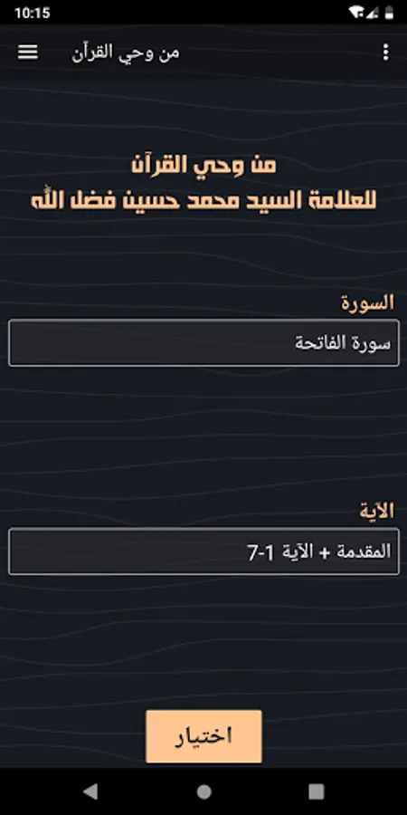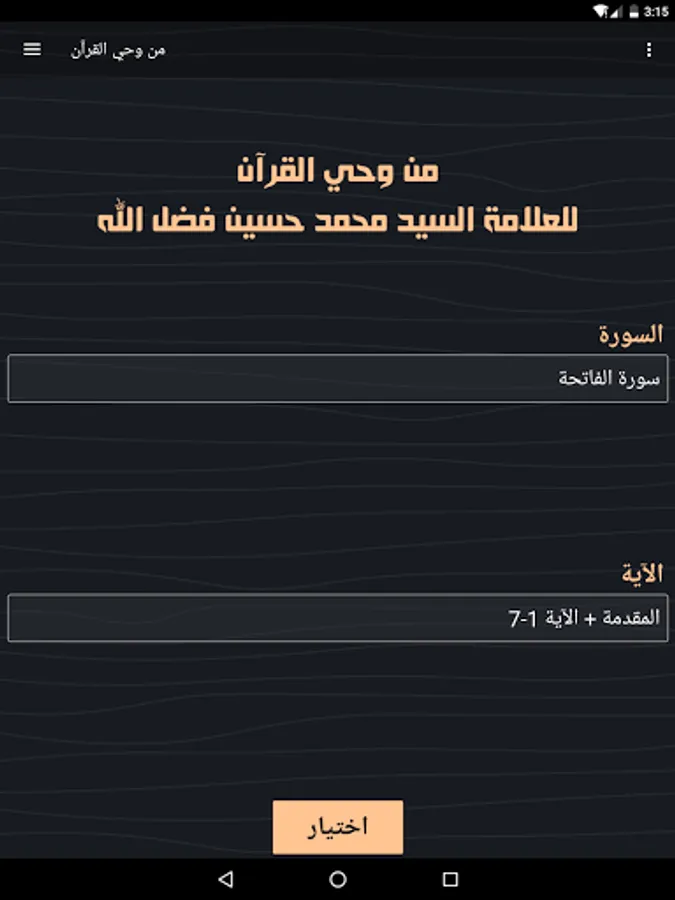 - The program allows the user to choose the surah and the verse / verses and go to their interpretation