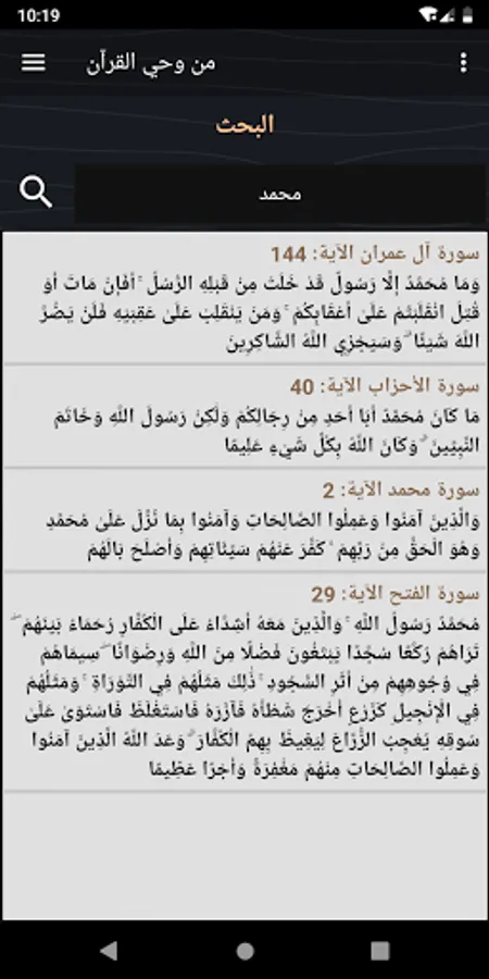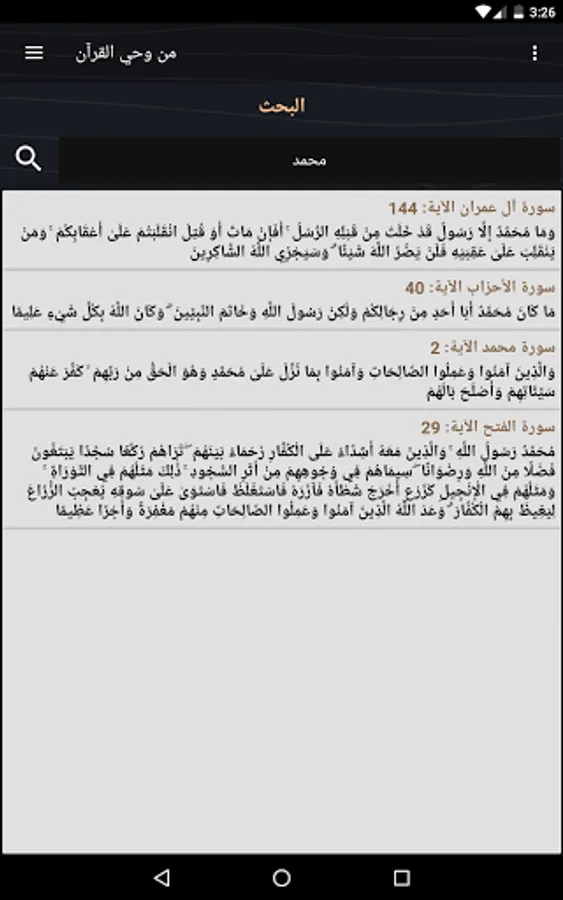 - The ability to search for a specific word from the Quran