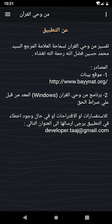 - An interpretation of the inspiration of the Qur’an by the eminence of the scholar, the reference, Sayyid Muhammad Husayn, Fadlallah, may God have mercy on him