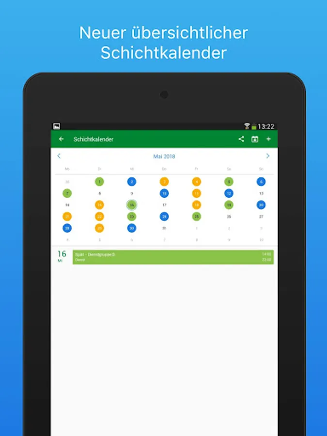 The familiar shift calendar has been replaced by a completely new module. Thus, the creation of a layer sequence is intuitive with a few clicks. Furthermore, you can add, delete or edit individual appointments later. Created layer sequences can be exported for a freely selectable period of time and sent to family members or acquaintances. In the calendar view, the private appointments can be synchronized by the device and displayed individually.