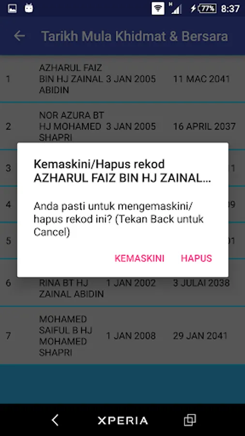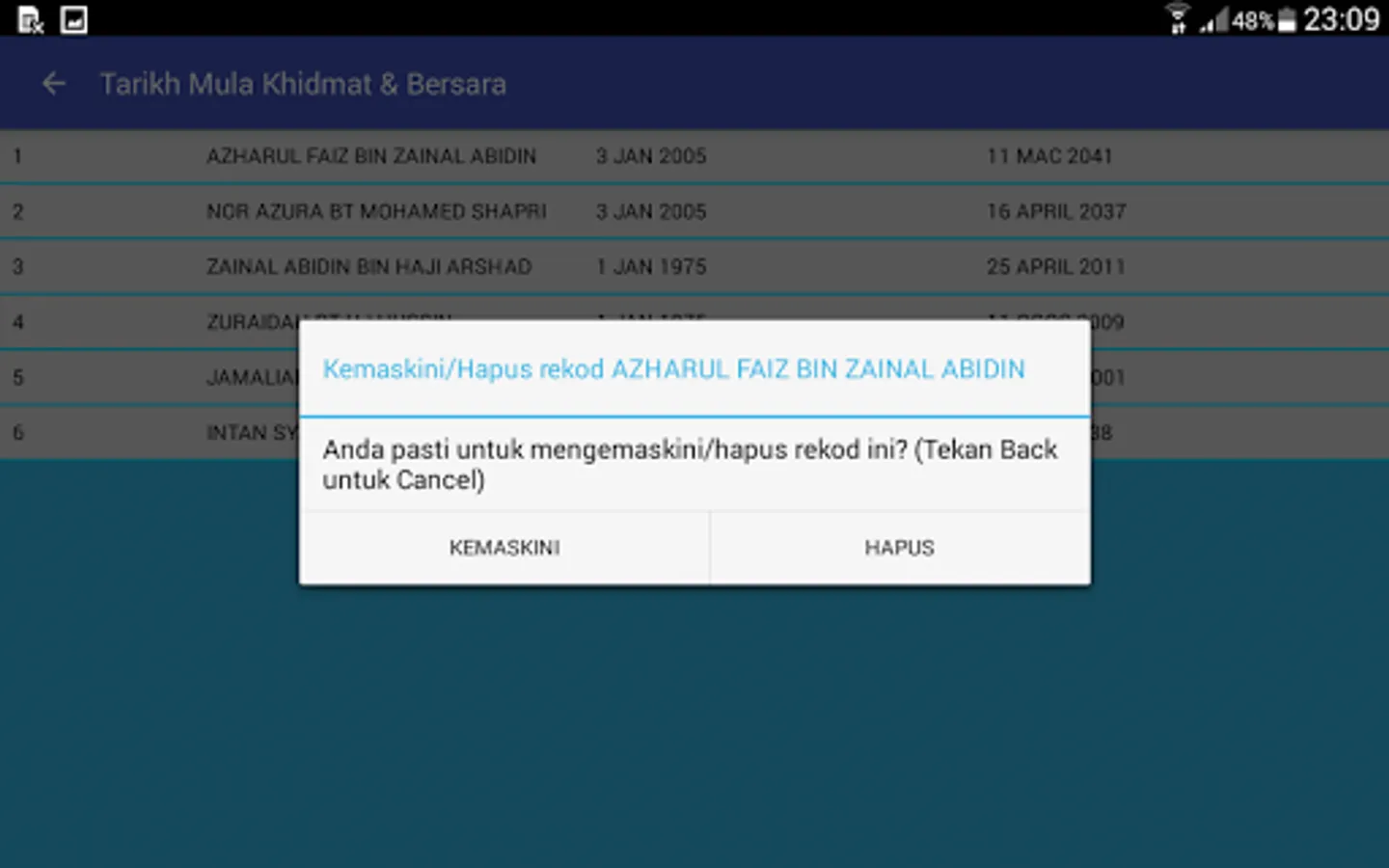 Apps ini juga menyokong penyimpanan data kiraan. Pengguna boleh menyimpan sehingga tiga rekod kiraan pencen (app versi percuma) berbanding tiada limit dalam versi pro. Database yang digunakan adalah SQLite dan tiada penggunaan Internet dan pelayan untuk menyimpan data. Setiap data yang disimpan boleh dikemaskini dan disimpan semula.