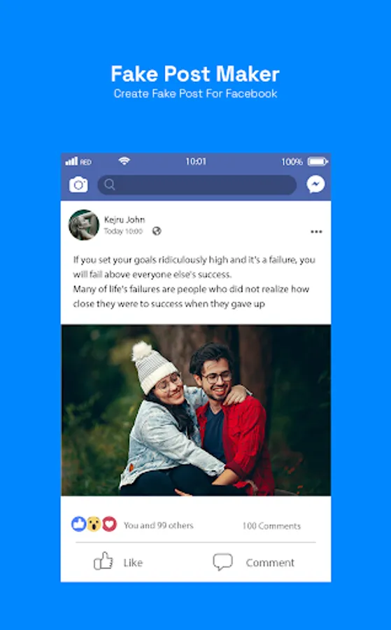 Show the post to anyone and pretend to be a famous personality that you have got unlimited likes, retweets and comments as well on your post. The only one is you that know that it is the fake tweat, fake ins And fake fasebok post by this best fake post maker and funny post app.