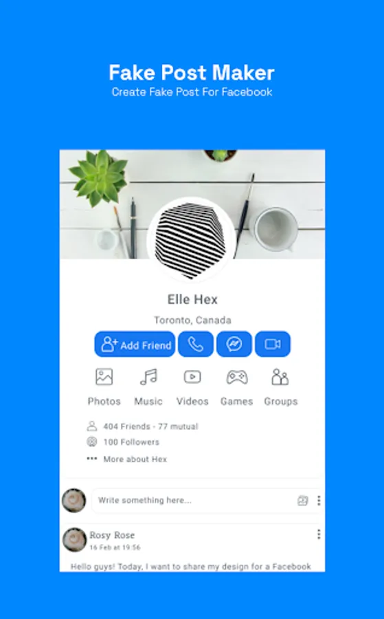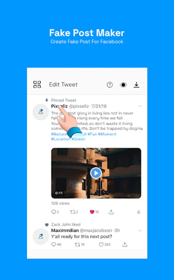 • Fake post maker for social media apps
