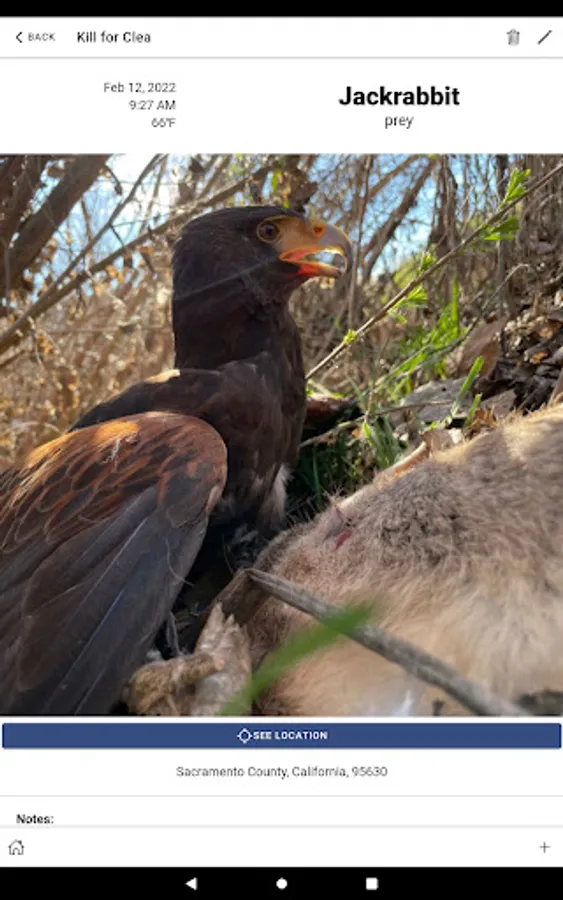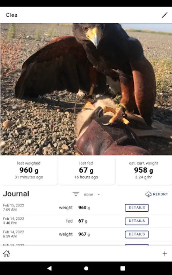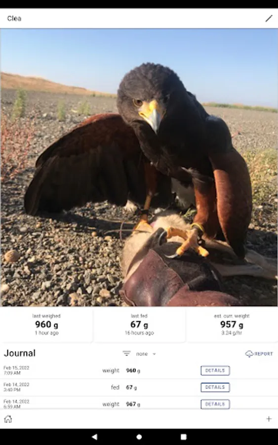 Falconry Journal takes that old notebook where you log all of your birds feedings, weight and kills digital. It automatically pulls data about the weather, location and time of your kills to make logging easy and fun. It also provides tools that allow you to more accurately predict your bird(s)' weight at any given time, so that you never miss a hunt. Falconry Journal allows you unlimited birds and data, and backs it all up securely in the cloud in case you need to change phones.