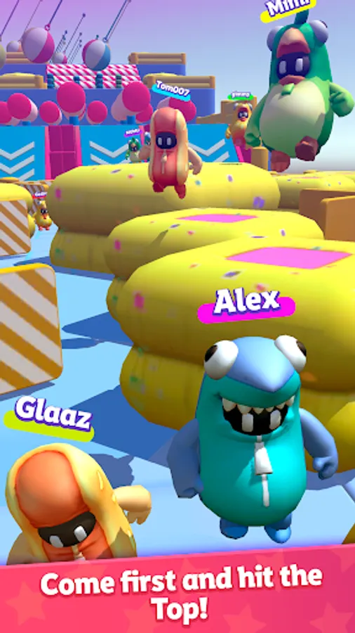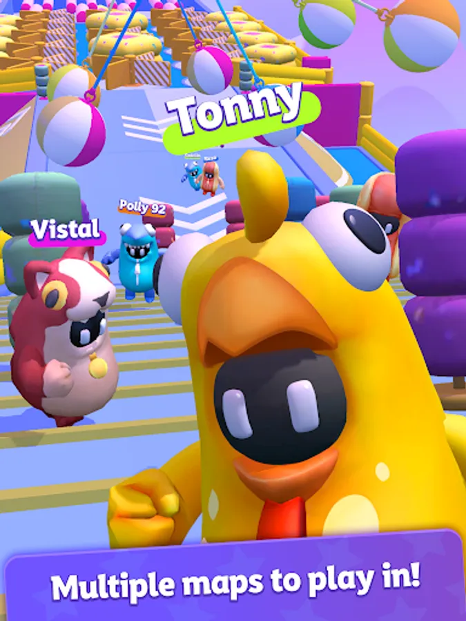 Run, race, slide, jump, fall, flip, punch, and blast your way through insane obstacles with dozens of other online mobile opponents. Guys, girls, tall kids, short dudes, funny boys, weird teens, everyone is welcome to fight, run, and have a stupid good time during this knockout race. Battle gangs of players through silly races and wacky arenas full of hilarious epic obstacles for the chance to end up on top! Take turns with your friends and join the battles!