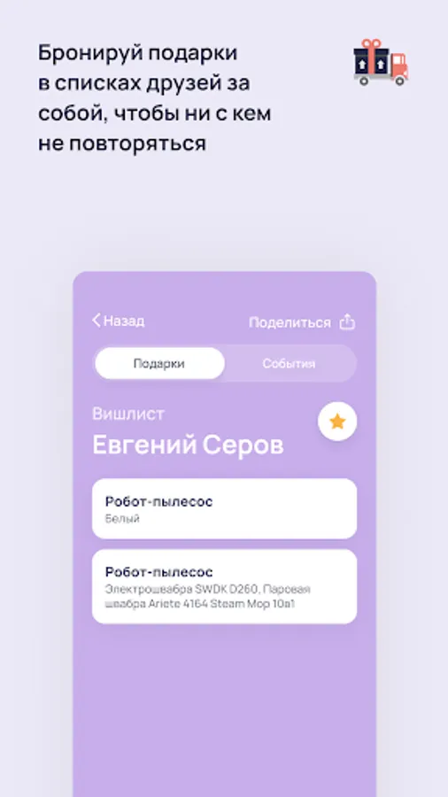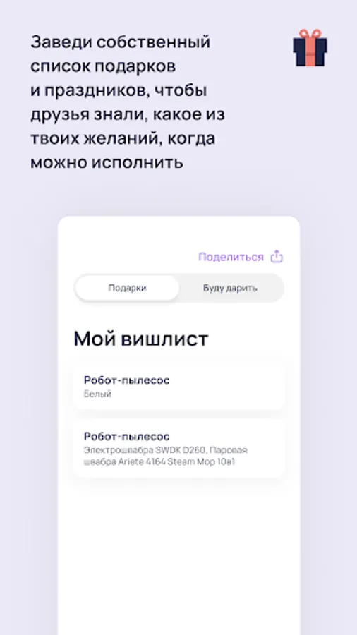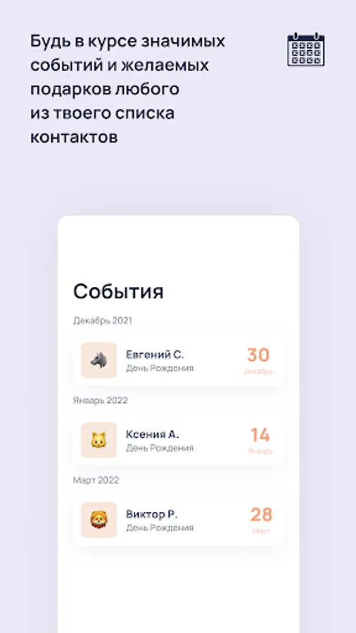 See your friends' wishes for gifts and upcoming holidays from your contact list.
