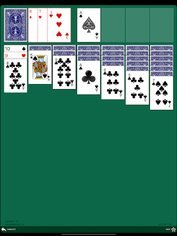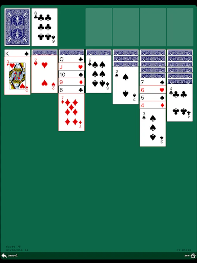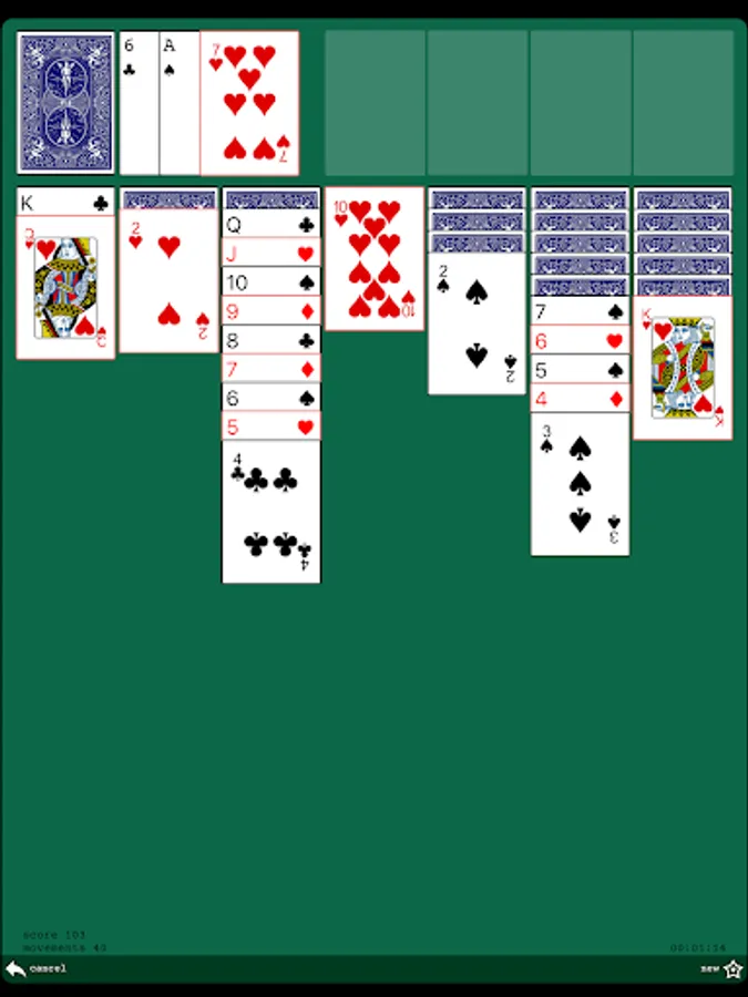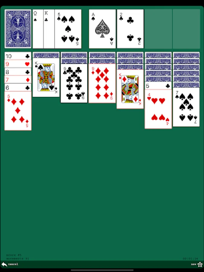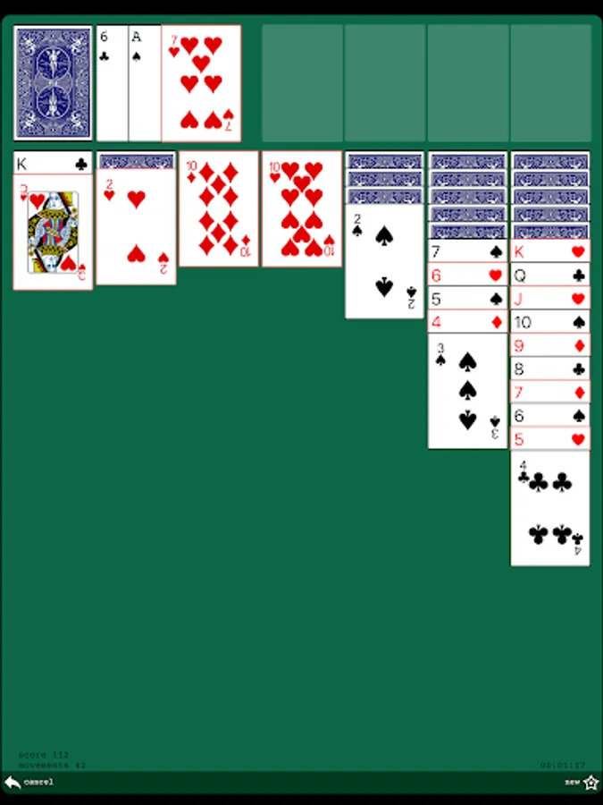 - you can move descending sequences of several cards to another column of the table, or move an entire column.