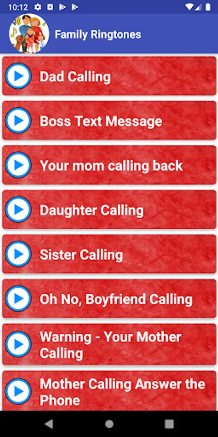 Get the largest collection of family ringtones and best friends sounds in this free app. Set unique ringtone for your dad, your mom, your girlfriend and so on!