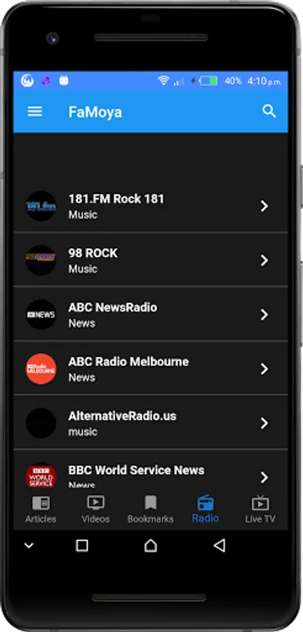 * Radio player with support for multiple radio channels, weather forecasts and LiveTV Channels.