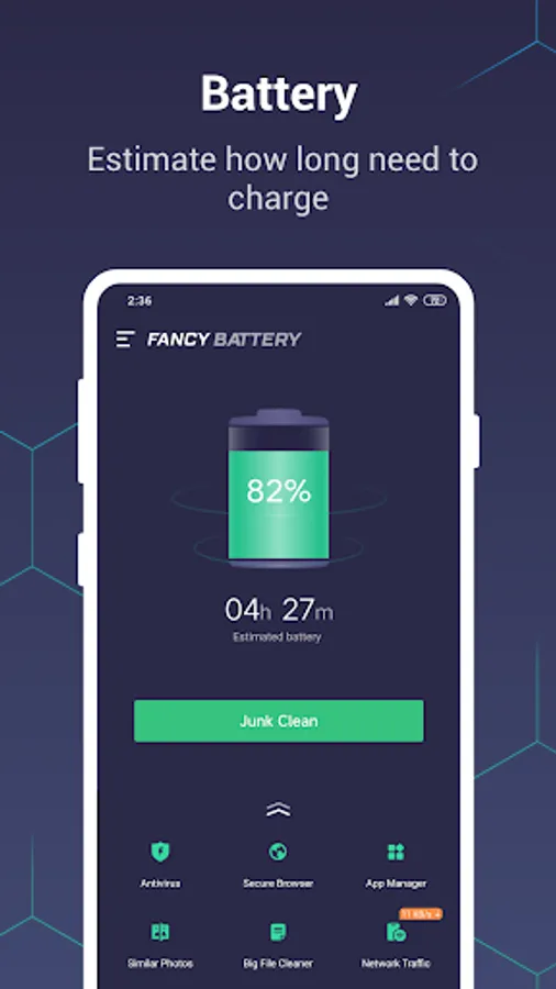 Fancy Battery can estimate how long the battery is left and how long will the battery be full when charging, and Fancy Battery is also a fast, light & powerful Android antivirus, phone cleaner, and app manager. It can remove viruses and clean storage space with simply one tap.