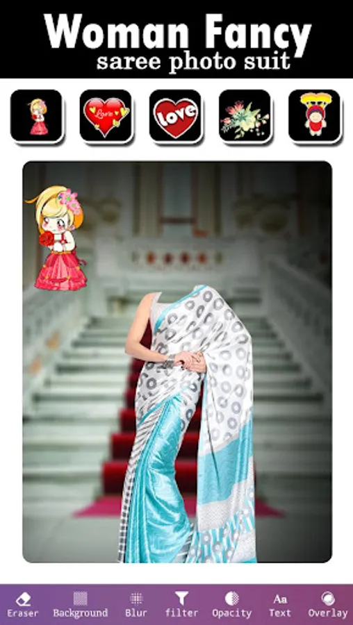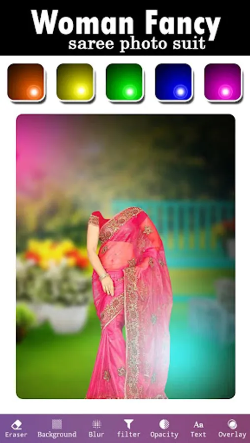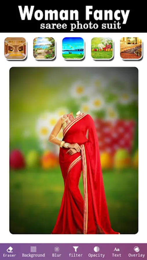 Look like a real in just few seconds with this Woman Fancy Saree Photo Suit App.