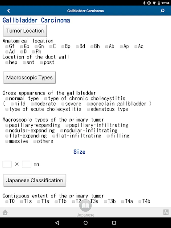 Also, in this application, is equipped with a checklist that can be advanced stage classification and case storage, T, N, and if you enter the M, automatically stage appears, save of cases, the cancer registration also I am now available. You can use all of the features for free.