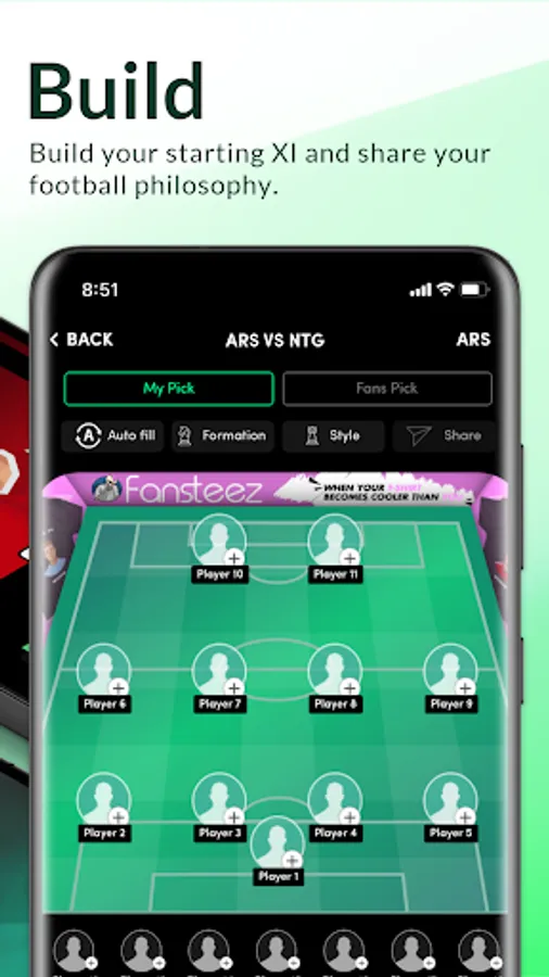 Pick up your best team based on your own knowledge or use the opinion of the gaffers around you. Create your best lineup before every match.