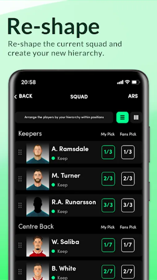 Mastermind the players position and status over the squad hierarchy in a real time mode, and check whether you see it differently from the other fans.