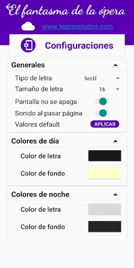 - Choose between night or day reading.