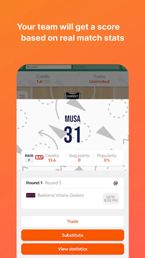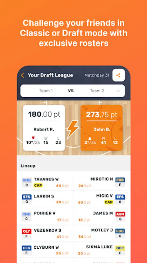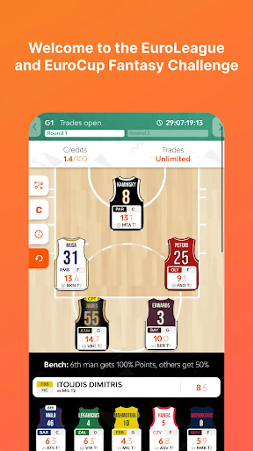 1) Classic mode (all versus all): you have 100 credits to choose 10 players and 1 head coach and challenge other users. Fantasy teams have non-exclusive rosters, meaning that each EuroLeague player can belong to multiple fantasy coaches.