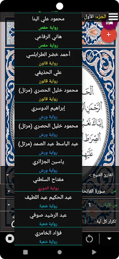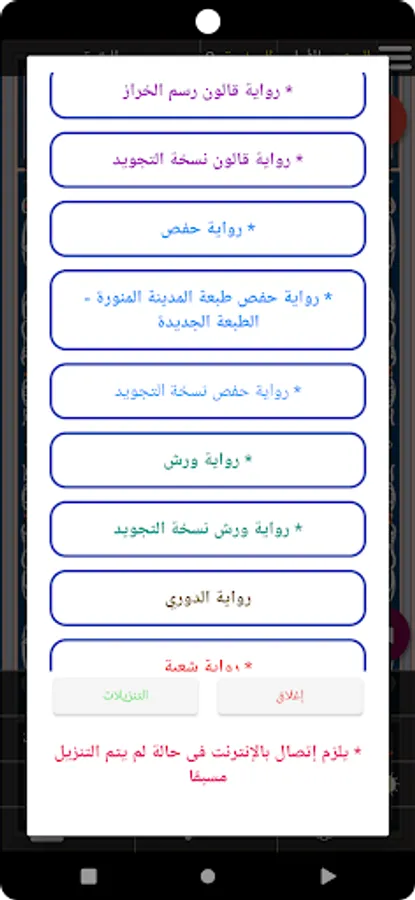 Hafs' novel with different readings. Qalun - Al-Duri - Warsh.