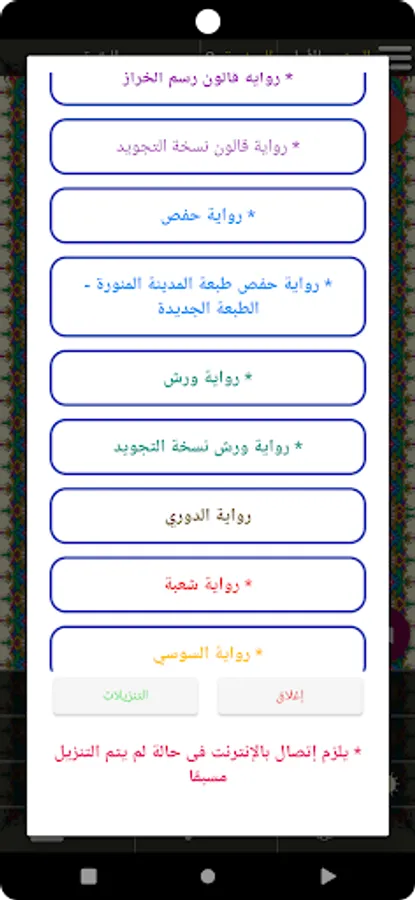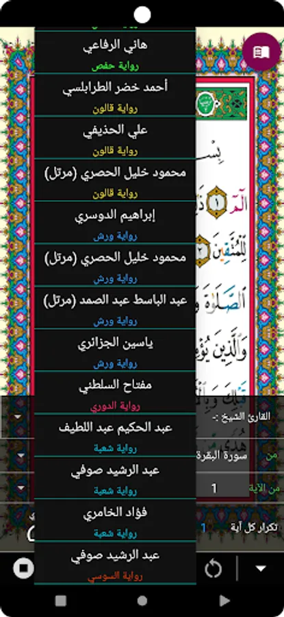 Hafs' novel with different readings. Qalun - Al-Duri - Warsh.