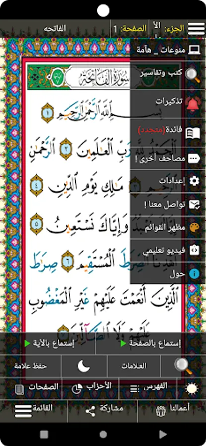 * Share the current page of the Qur'an