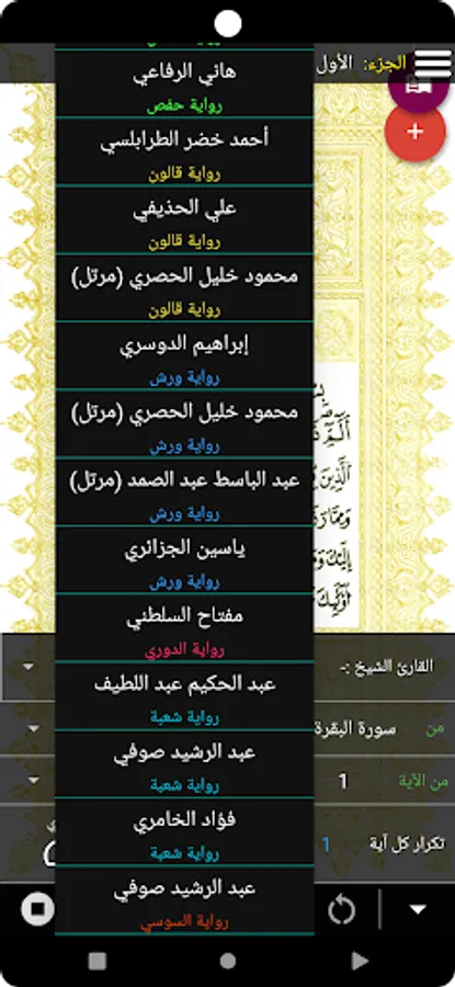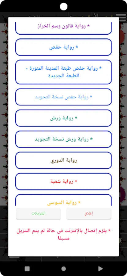 Hafs' novel with different readings. Qalun - Al-Duri - Warsh.