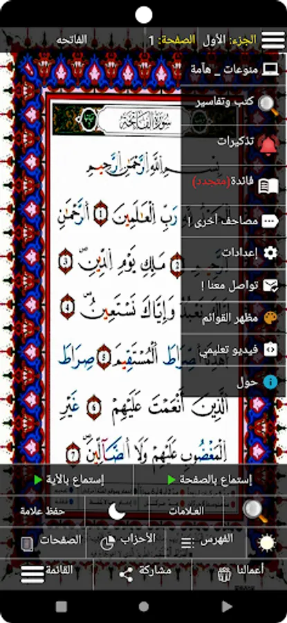 * Share the current page of the Qur'an