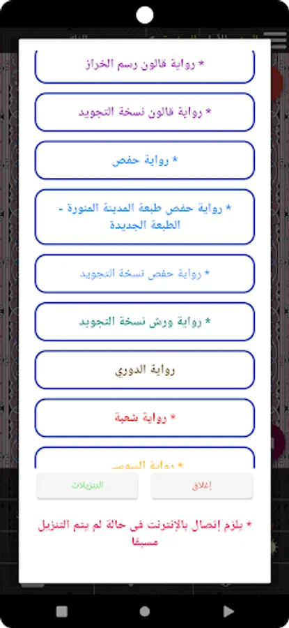 Hafs' novel with different readings. Qalun - Al-Duri - Warsh.