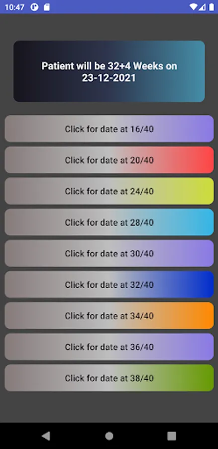 * Obstetric wheel + scan dates (16, 20, 24, 28, 32, 36 & 38 weeks)