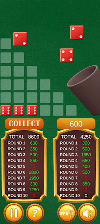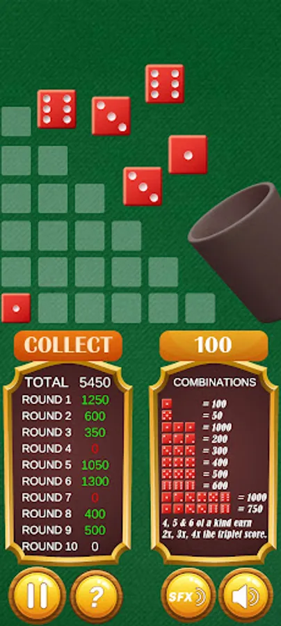 4. If the player gets a score on all six dice, it is called a "hot dice" after which the player continues with a new roll on six dices which is added to the accumulated score. And there is no limit to "hot dices".