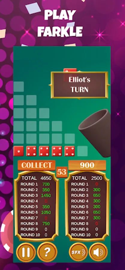 3. The player can then either roll again or collect the accumulated score (if score is greater 300).