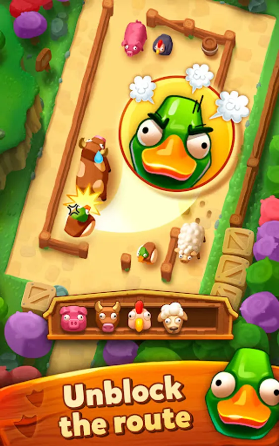 Like in most farming games, our puzzle game will bring some intricate moments: electric fences, carts, hungry wolf, and old Fred are on the way to animal freedom. It will make the “connect animal” task more challenging. Think twice before the move in our parking game. Trust us, if you like block puzzle games or matching puzzle games, Farm Jam is your destiny!