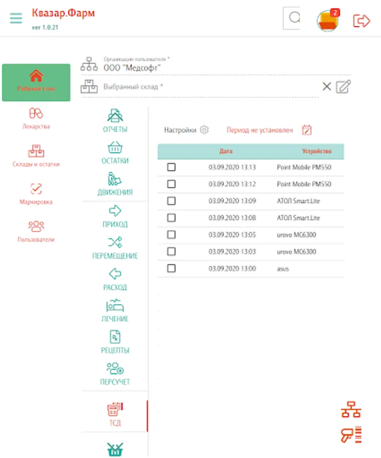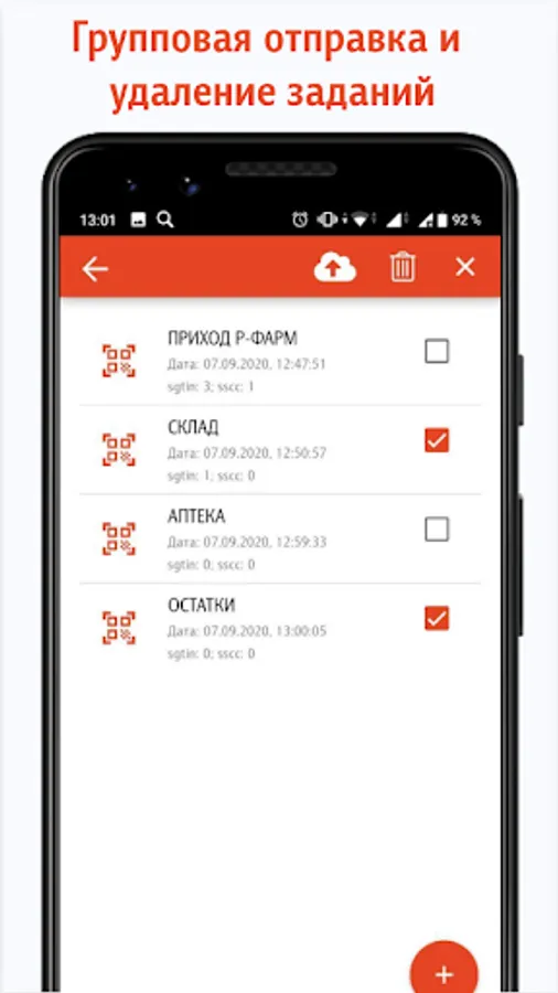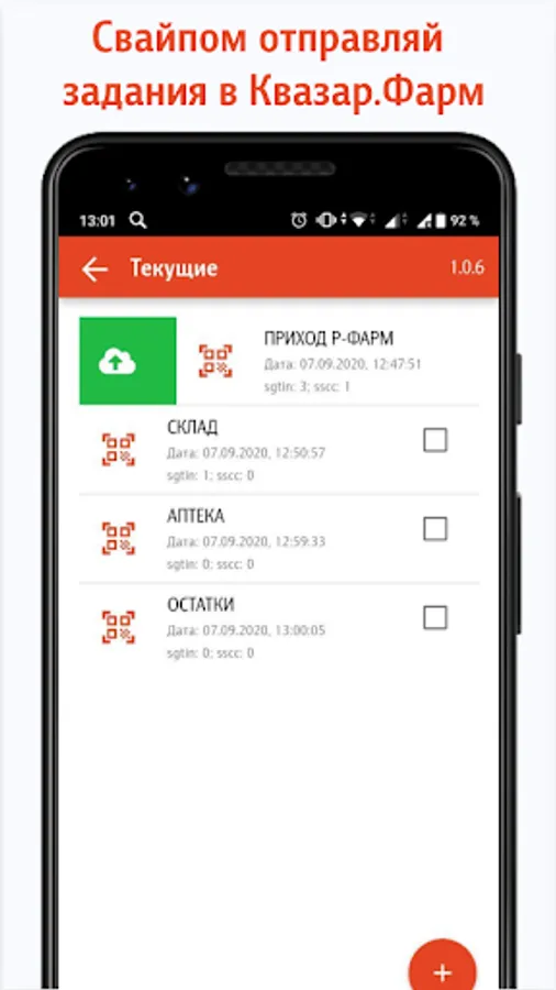 The application allows you to read labeling codes from transport and consumer packages of medicines and transfer data to the Quasar.Pharm system.