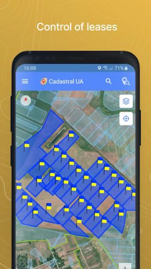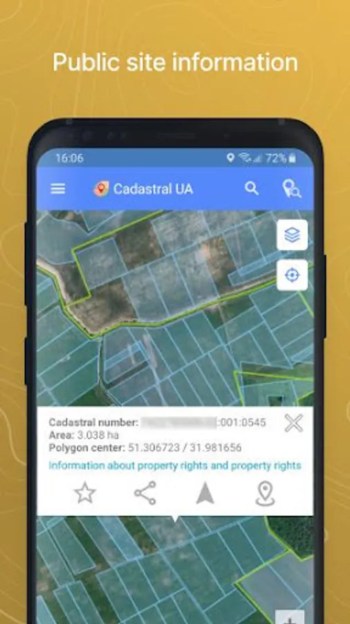 The application allows you to view the public cadastral map of Ukraine and provides additional features: